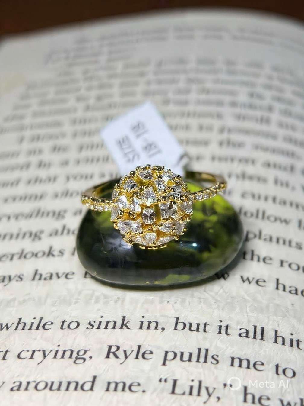 Modern gold-tone ring with sparkling crystal cluster design, perfect for party wear and special occasions.