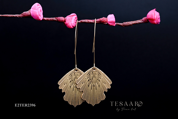 Stylish gold-toned earrings inspired by the elegance of ginkgo leaves, featuring fine engraved detailing that brings out a natural, graceful charm perfect for modern sophistication.