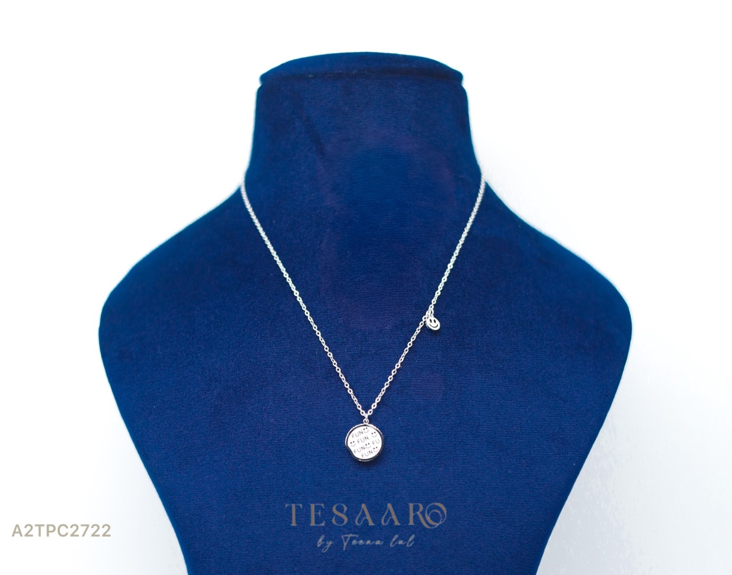 A premium stainless steel, anti-tarnish necklace featuring a minimalist gold-tone chain paired with a chic engraved coin pendant that reads “FUN” in a playful pattern. Finished with an additional tiny charm for extra charm and elegance, this piece is perfect for adding a light-hearted yet stylish touch to everyday outfits.
