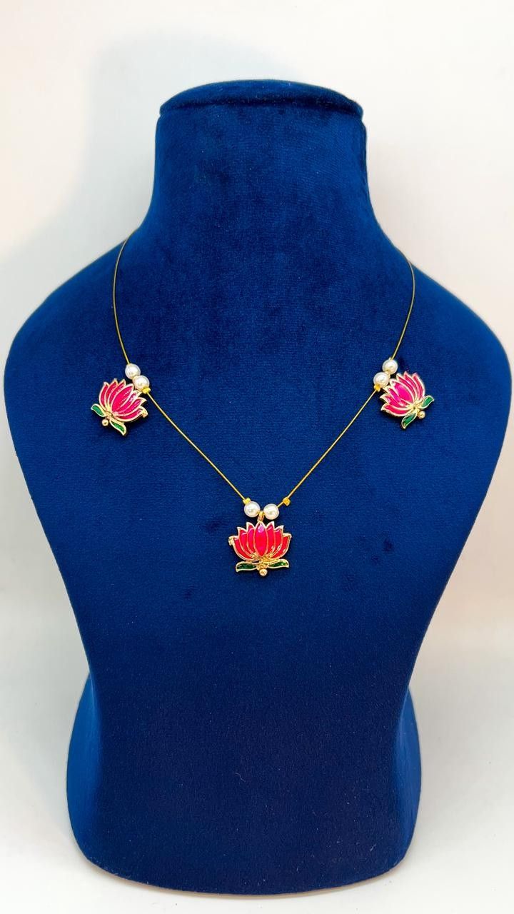 Elegant Kerala-inspired lotus motif necklace with pearl accents, perfect for daily wear, festive looks, and traditional outfits.