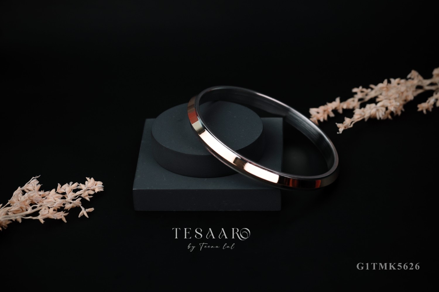 A refined and elegant metal bangle featuring a smooth mirror-finish surface with a subtle silver shine. Its minimalist yet luxurious design makes it perfect for everyday sophistication or pairing with formal attire. A timeless classic from Tesaaro.