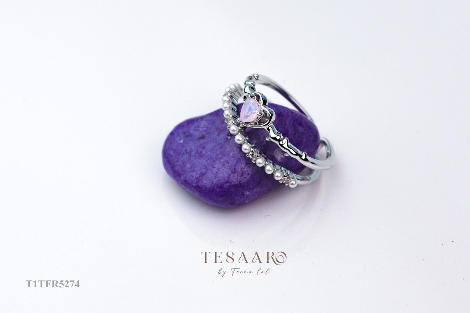 A premium jewellery statement from Tesaaro, featuring a charming heart-shaped stone paired with a delicate pearl band for a romantic and graceful look.